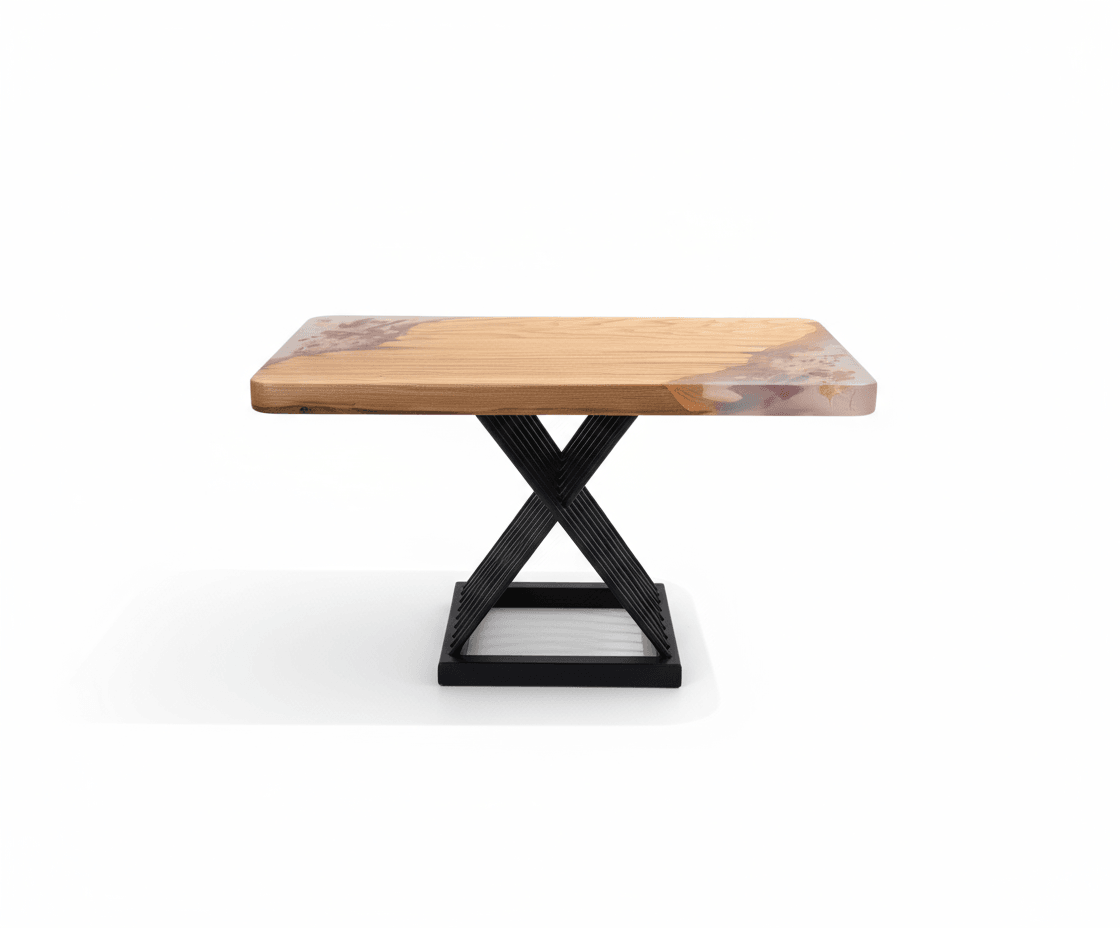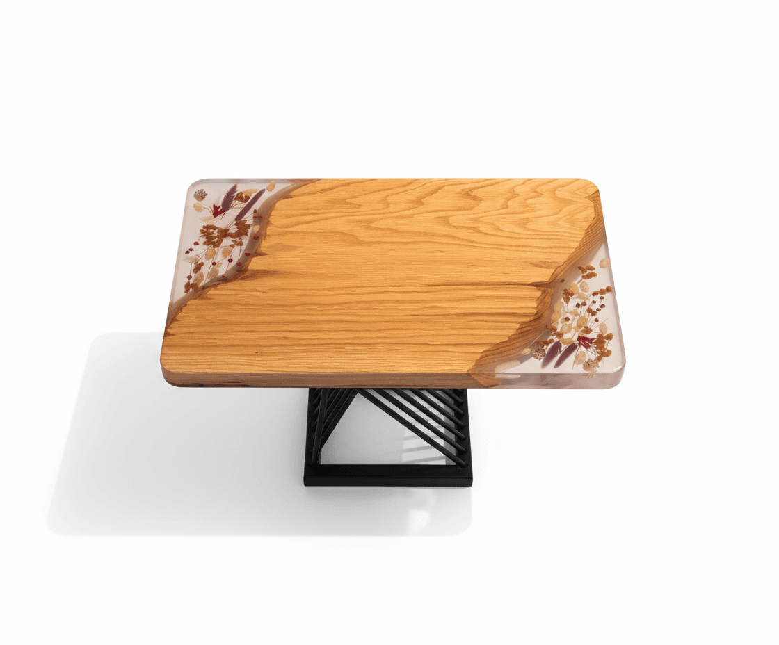 BloomWood – Stół z kwiatami w żywicy i czerwonego dębu