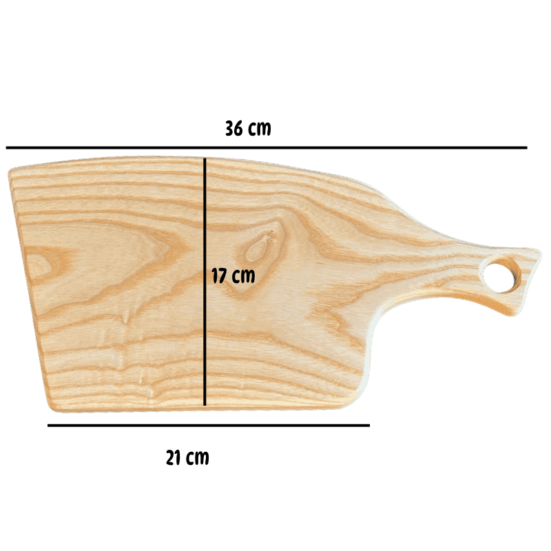 Ta deska do krojenia została wykonana ręcznie z wysokiej jakości drewna jesionowego, znanego z twardości, odporności na uszkodzenia oraz pięknego, jasnego usłojenia. Jej prostokątny kształt z delikatnie zaokrąglonymi rogami i praktycznym uchwytem sprawia, że jest nie tylko funkcjonalna, ale też stylowa.