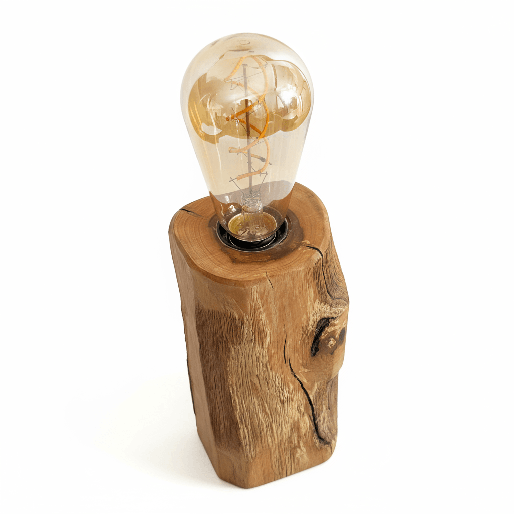 Lampka „Jabłoniowy Blask” to wyjątkowe połączenie natury i designu. Wykonana z autentycznego drewna jabłoni, zachwyca swoją naturalną fakturą, ciepłymi odcieniami oraz niepowtarzalnym rysunkiem słojów. Każdy egzemplarz jest unikatowy – różnice w strukturze i kolorze drewna sprawiają, że żadna lampka nie wygląda tak samo. Drewniana podstawa została starannie oszlifowana, zachowując jednocześnie surowy, naturalny charakter, a żarówka w stylu retro dodaje jej wyjątkowego klimatu.