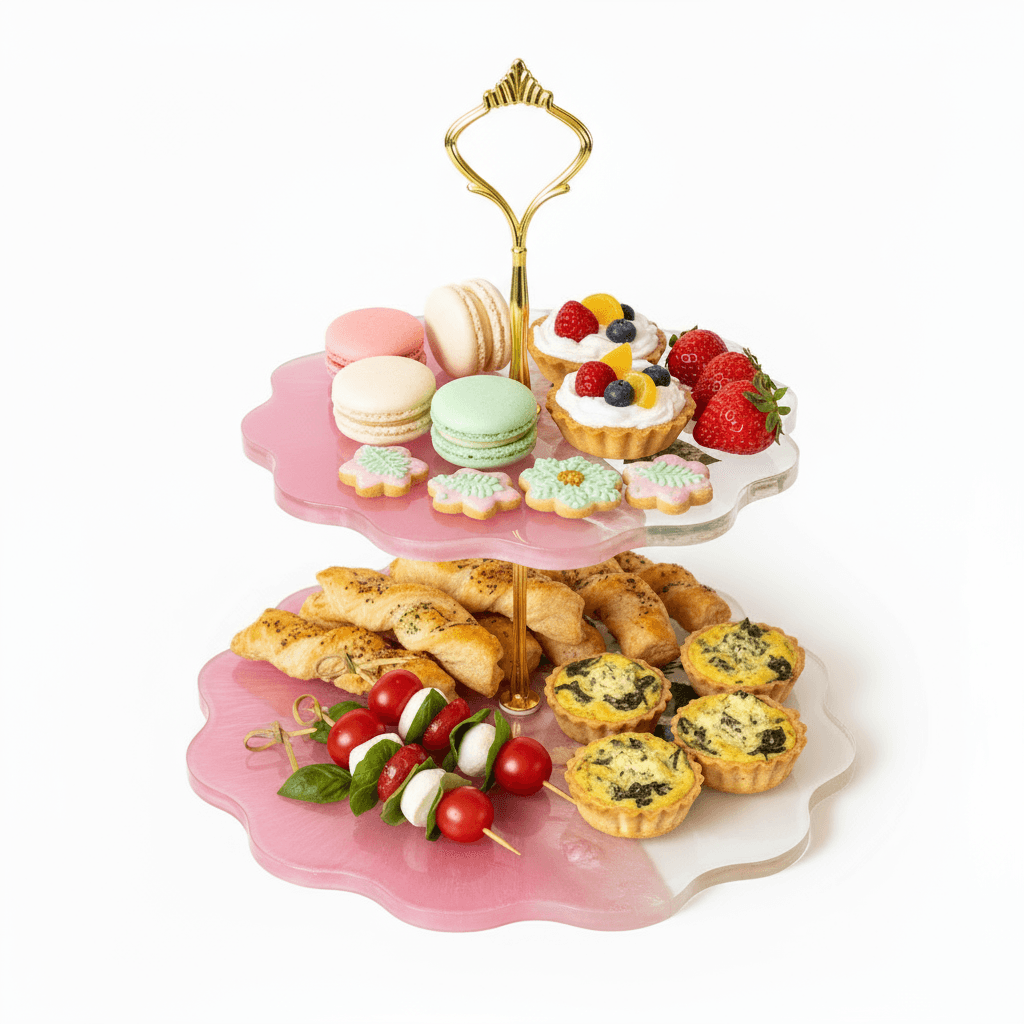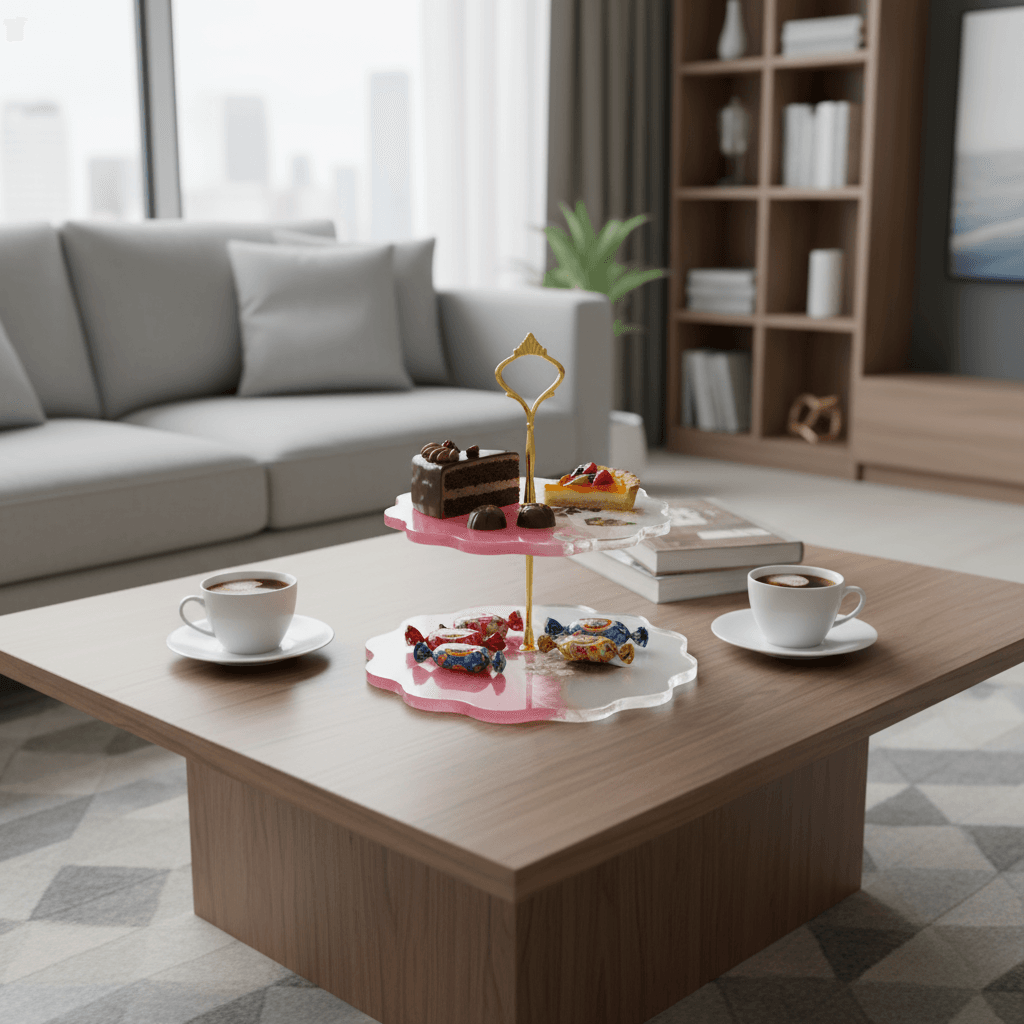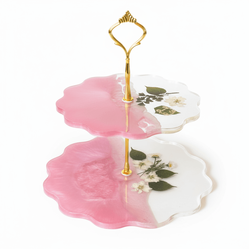 Dwupoziomowa patera z żywicy epoksydowej „Różany Ogród” – unikalna ozdoba i funkcjonalność w jednym