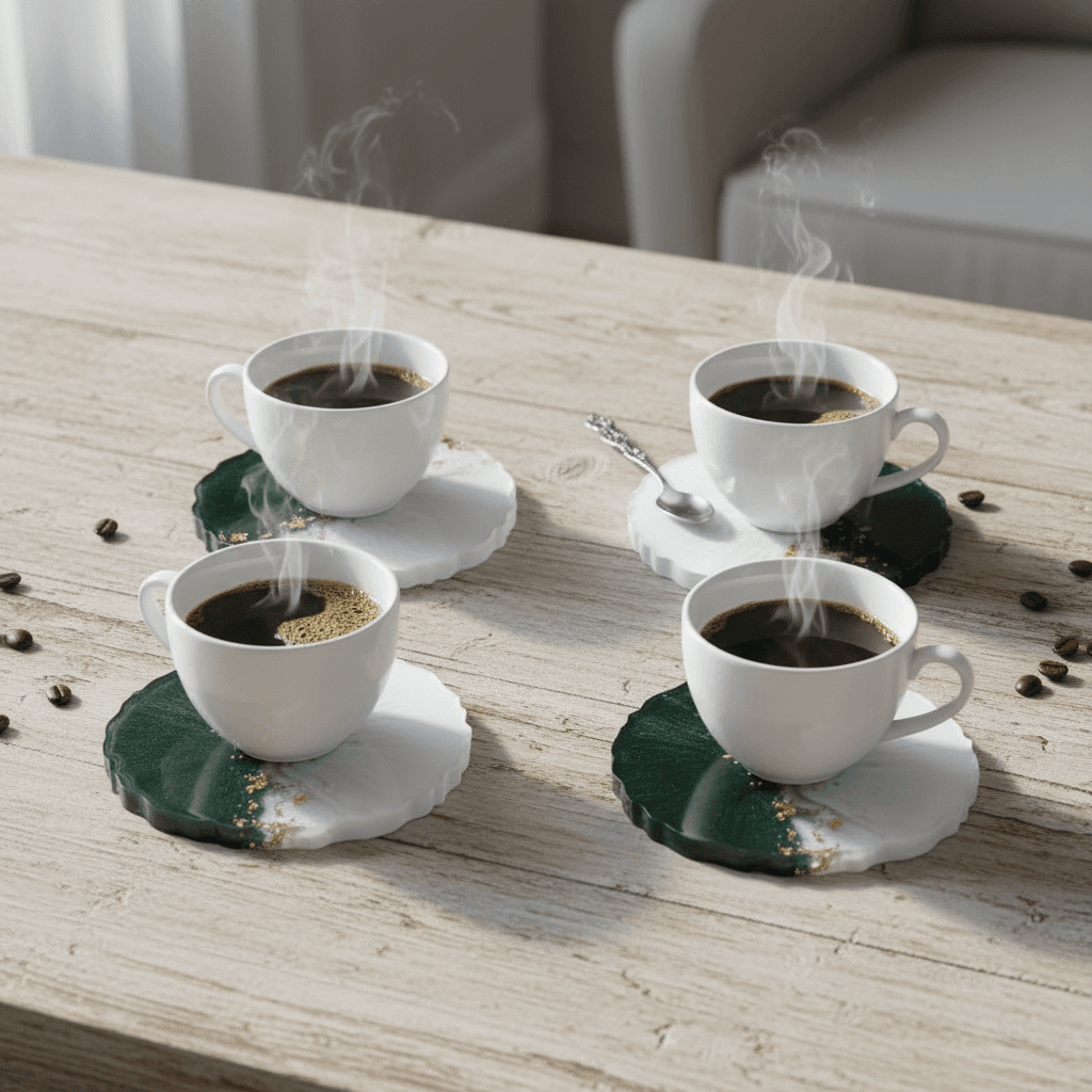 Zestaw dekoracyjny: Taca z żywicy + 4 podstawki pod kubki – styl i elegancja w Twoim domu